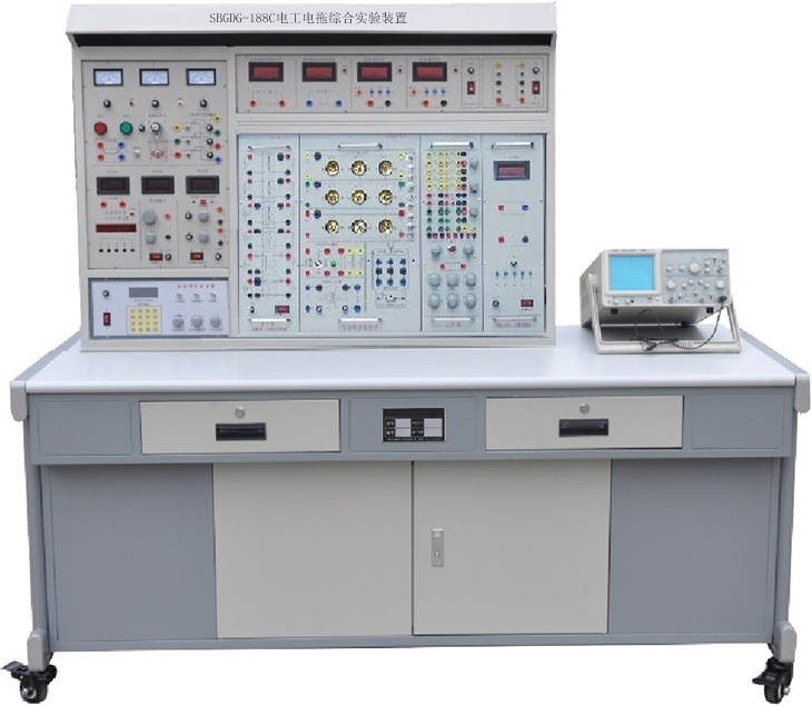 電工電子實(shí)驗(yàn)臺(tái)“通用電工實(shí)驗(yàn)設(shè)備”是根據(jù)職業(yè)學(xué)校、技工學(xué)校、中等專業(yè)學(xué)校的電工技術(shù)基礎(chǔ)、電工技能訓(xùn)練、電工學(xué)等有關(guān)教學(xué)實(shí)驗(yàn)大綱的要求而設(shè)計(jì)的。內(nèi)容有直流電路、交流電路、正弦與正弦電路、磁與電磁。該裝置符合勞動(dòng)部、機(jī)電部頒發(fā)的中級(jí)技術(shù)工人考核標(biāo)準(zhǔn)電工部分的內(nèi)容,是理論學(xué)習(xí)、實(shí)驗(yàn)驗(yàn)證、技能訓(xùn)練為一體的現(xiàn)代化電工實(shí)驗(yàn)成套設(shè)備。電工電子實(shí)驗(yàn)臺(tái)培養(yǎng)學(xué)生了解和掌握電子元器件及電工電子基本原理的能力,培養(yǎng)學(xué)生熟練使用電子儀器儀表的能力,為今后的專業(yè)實(shí)驗(yàn)、實(shí)訓(xùn)打下堅(jiān)實(shí)的基礎(chǔ)。電工電子實(shí)驗(yàn)室主要儀器設(shè)備:電工電子實(shí)驗(yàn)臺(tái)、常用儀器儀表等。電工電子實(shí)驗(yàn)臺(tái)主要實(shí)驗(yàn)或?qū)嵱?xùn)項(xiàng)目:分別開設(shè)強(qiáng)電和弱電的課程實(shí)驗(yàn)和課程設(shè)計(jì)。實(shí)驗(yàn)涉及課程包括電工學(xué)、模擬電路技術(shù)和數(shù)字電路技術(shù),主要實(shí)訓(xùn)課程有常用半導(dǎo)體材料及伏安特性的測(cè)試、集成放大電路、直流穩(wěn)壓電路、示波器的使用、數(shù)碼顯示電路、集成觸發(fā)器特性、555定時(shí)器、單穩(wěn)態(tài)觸發(fā)器、等非電類專業(yè)基礎(chǔ)實(shí)驗(yàn)課。通過驗(yàn)證性、設(shè)計(jì)性相結(jié)合的實(shí)驗(yàn)項(xiàng)目,使學(xué)生掌握基本電路模塊的設(shè)計(jì)、測(cè)試技術(shù),通過理論知識(shí)分析實(shí)驗(yàn)現(xiàn)象和排除故障的過程,使學(xué)生了解了系統(tǒng)設(shè)計(jì)與工程設(shè)計(jì)過程,提高了學(xué)生的實(shí)際動(dòng)手能力。電工電子實(shí)驗(yàn)臺(tái)、電子綜合實(shí)訓(xùn)設(shè)備,同時(shí)包含示波器、數(shù)字萬用表等配套設(shè)備。可開設(shè)我校醫(yī)學(xué)影像技術(shù)專業(yè)和醫(yī)用電子儀器與維護(hù)專業(yè)的《電子學(xué)基礎(chǔ)》、 《電工技術(shù)》、 《模擬電子技術(shù)》及《數(shù)字電子技術(shù)》等工學(xué)基礎(chǔ)類課程的實(shí)驗(yàn)實(shí)訓(xùn)。