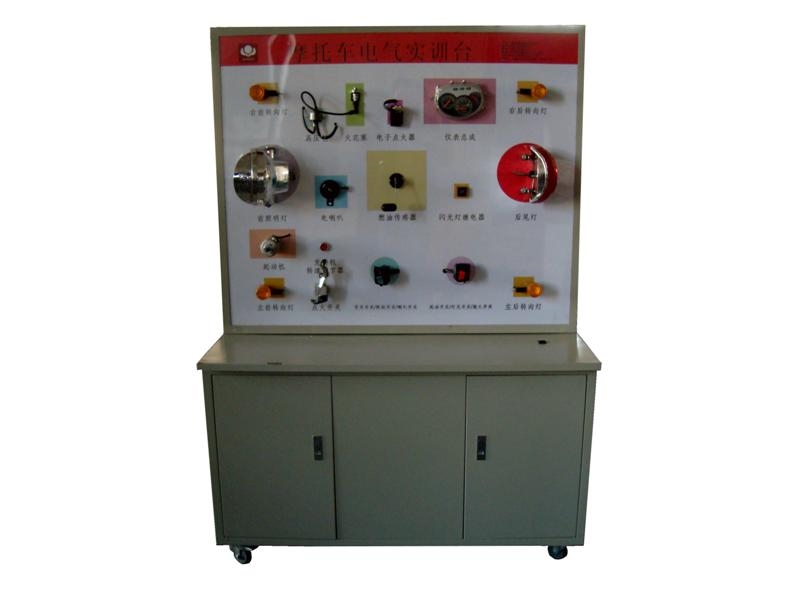 摩托車整機總成、起動運行所有相關的原車附件、故障模擬考核和排除系統、原車電路原理圖板及檢測端子、蓄電池、控制面板柜、可移動臺架、臺架電源總開關、臺架操作說明書、實驗指導書等附件。