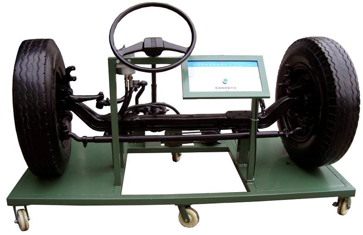 本實驗臺選用 翻新勇士CTL151A汽車動力轉向系統原廠轉向橋總成、轉向器、轉向機構、轉向拉桿、擺臂等系統實物組成,把前橋總成、液壓助力轉向、懸架綜合系統、轉向機構等實物全部更直觀的展露出來,可進行動力轉向和非動力轉向的對比,充分演示原車液壓助力轉向、懸架系統的結構組成與工作過程及的原理、作用及變化。能夠滿足對動力轉向系統的結構組成,工作原理,實踐操作等教學所需。