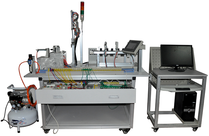 本設備主要包括實訓臺架、典型的機電一體化設備的機械部件、PLC模塊、變頻器模塊、按鈕模塊、電源模塊、模擬生產設備實訓模塊、接線端子排和各種傳感器等組成。整體結構采用開放式和拆裝式,實訓裝置用于機械部件組裝,可根據現有的機械部件組裝生產設備,也可添加機械部件組裝其他生產設備,使整個裝置能夠靈活的按教學或競賽要求組裝具有生產功能的機電一體化設備。