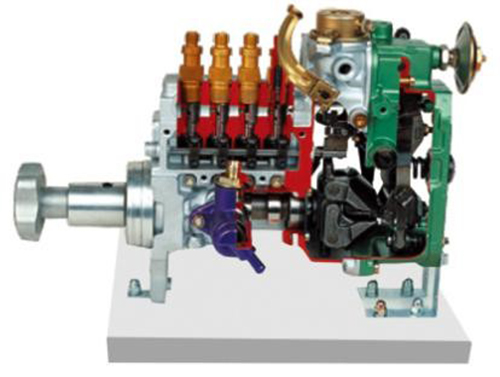 1.采用翻新柴油機12缸柱塞式高壓噴油泵一調速器總成(附件齊全)進行解剖,各零部件齊全,能夠全面的展示總成的內外結構。