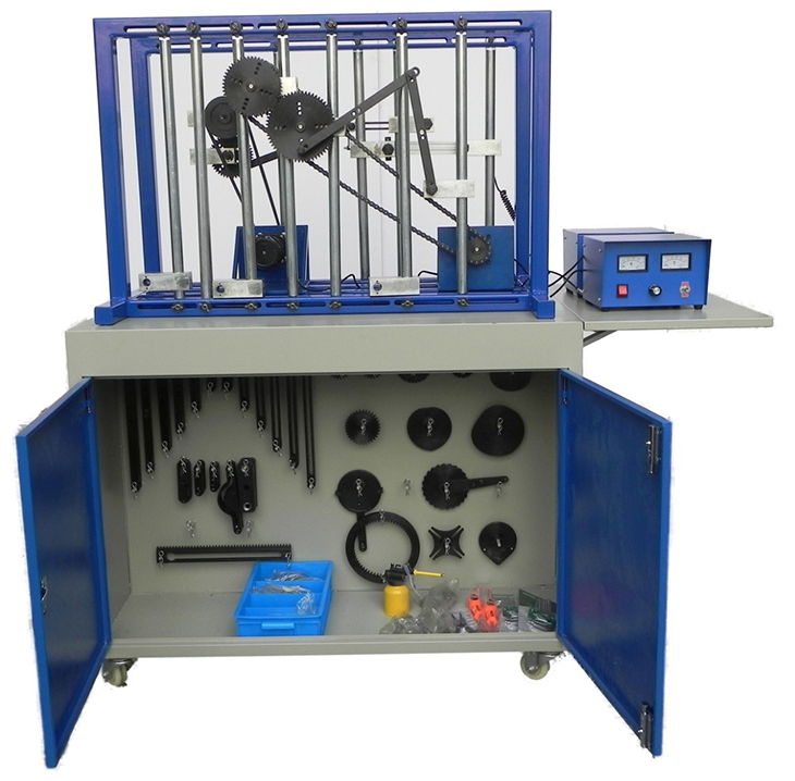 產(chǎn)品簡(jiǎn)介: 該實(shí)驗(yàn)臺(tái)主要由機(jī)架、電機(jī)、帶傳動(dòng)裝置和一個(gè)規(guī)范化零件庫(kù)(零件箱)組成,零件庫(kù)內(nèi)配備有各種基本桿組、回轉(zhuǎn)副、移動(dòng)副、凸輪、槽輪、齒輪、齒條以及聯(lián)接件等共計(jì)50種80多個(gè)規(guī)格。運(yùn)動(dòng)構(gòu)件有桿組、凸輪、槽輪、棘輪、齒輪、齒條等。
