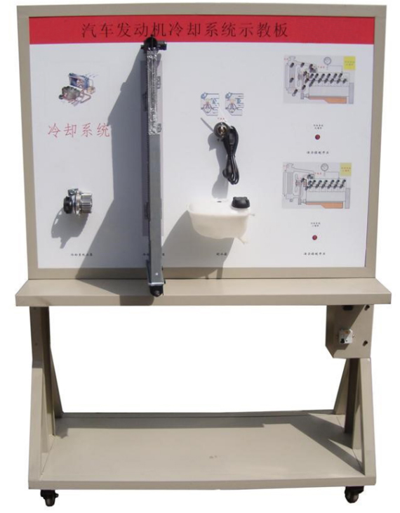 2.示教板面板采用耐創(chuàng)擊、耐污染、防火、防潮的高級(jí)鋁塑板,表面經(jīng)特殊工藝噴涂底漆處理;面板打印有永不褪色的彩色電路圖與工作原理示意圖;學(xué)員可直觀對(duì)照發(fā)動(dòng)機(jī)冷卻系統(tǒng)結(jié)構(gòu)原理圖和實(shí)物,認(rèn)識(shí)和分析發(fā)動(dòng)機(jī)冷卻系統(tǒng)的工作原理。