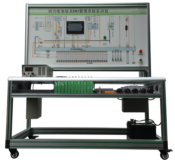 選用新能源車輛磷酸鐵鋰 動力電池包,單體電池(3.2V20AH,共24串),帶CAN總線的一體機(jī)BMS電池管理系統(tǒng),有被動均衡功能;真實(shí)地呈現(xiàn)了磷酸鐵鋰動力電池包核心零部件之間的連接控制關(guān)系、安裝位置和運(yùn)行參數(shù),以及高壓系統(tǒng)安全注意事項(xiàng),并培養(yǎng)學(xué)員對磷酸鐵鋰動力電池包(BMS)故障分析和處理能力。適用于了解與驗(yàn)證電動汽車的動力電池參數(shù)進(jìn)行實(shí)時監(jiān)控、故障診斷、SOC估算、短路保護(hù)、絕緣檢測、充放電控制、均衡等功能,并通過CAN總線的方式與帶CAN通訊的車載充電機(jī)進(jìn)行信息交互,保障電動汽車高效、可靠、安全運(yùn)行的BMS教學(xué)實(shí)訓(xùn)實(shí)驗(yàn)。