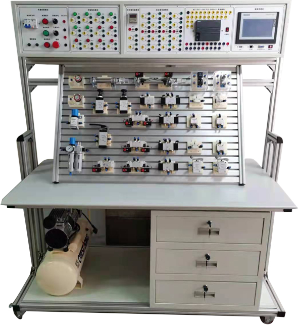 液壓與氣動技術實驗室設備、透明液壓實驗臺、氣動實驗臺、液壓元件拆裝實訓臺、透明液壓傳動演示實驗臺、液壓綜合測試實驗臺、智能液壓綜合實驗臺、機電液綜合實驗臺、雙面氣動傳動實驗臺、液壓氣動元件陳列柜、液壓挖掘機實驗臺、液壓起重機實驗臺、液壓裝載機實驗臺、透明液壓推土機實訓臺、液壓叉車控制教學實驗臺主要承擔機電類相關專業《液壓與氣動技術》課程的專業實驗任務。能提供包括液壓泵和控制元件結構拆裝與分析實驗、系統回路控制實驗、系統性能實驗和氣動技術實驗在內的不同類型的實驗。液壓與氣動實驗室所開設的實驗和液壓(或氣動)行業中的液壓系統(或氣動系統)的設計、連接調試、維護等緊密相關,通過機-電-液一體化綜合控制實驗,學生可系統地學習PLC程序設計與調試、液壓回路的設計與調試,并且通過碩博軟件使相關知識有機地結合在一起,實現對硬件的動作,從而提高各門課程的綜合應用能力。