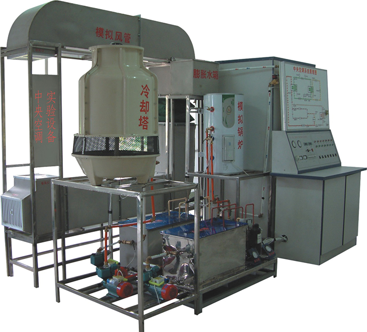 中央空調實驗設備是將中央空調微型化,同時保持整個中央空調系統的完整性和合理性。本實驗系統采用微機控制能單獨演示中央空調的夏天制冷、冬天制熱循環,控制系統由電腦控制與手動控制二種方法演示。為了解各種參數的變化情況和系統的工作狀況。實驗臺增加了一些輔導結構,使其能人為地制造各種實際中可產生的系統故障,方便學員了解故障的產生和排除故障的方法。